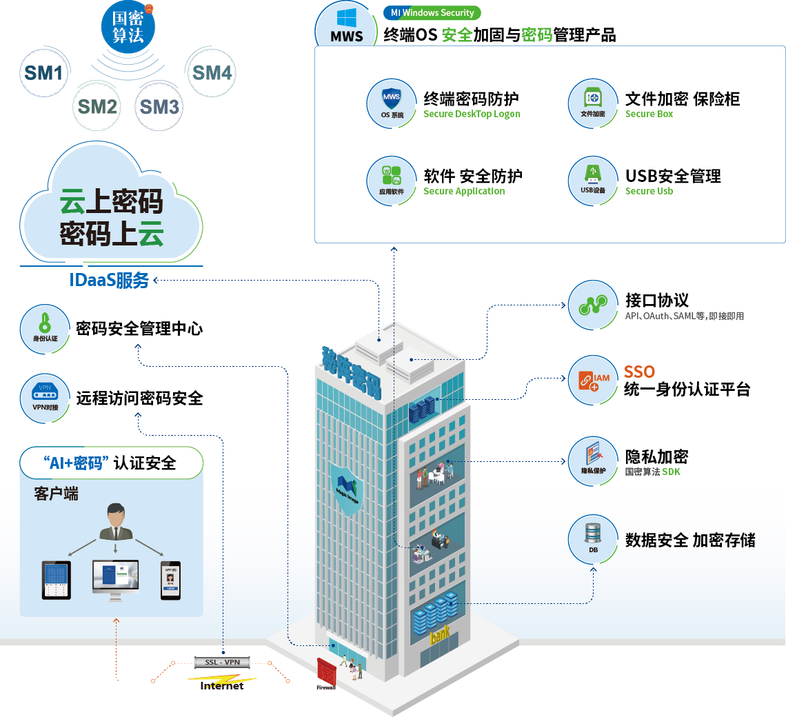 替換傳統靜態口令認證方式、追加秘陣AI密碼認證、秘陣驗證碼(取代短信方式)、密碼技術應用小程序